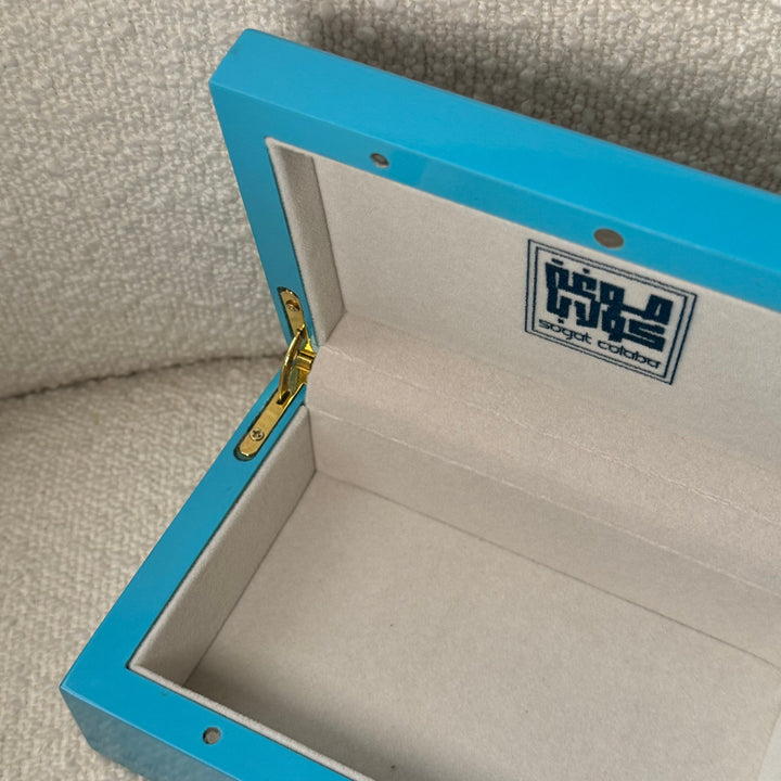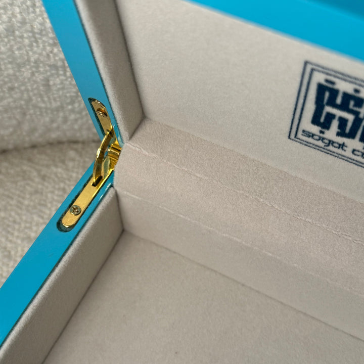 Made of the highest quality materials, with a magnetic closing and velvet interior. Our signature box is FINALLY here!